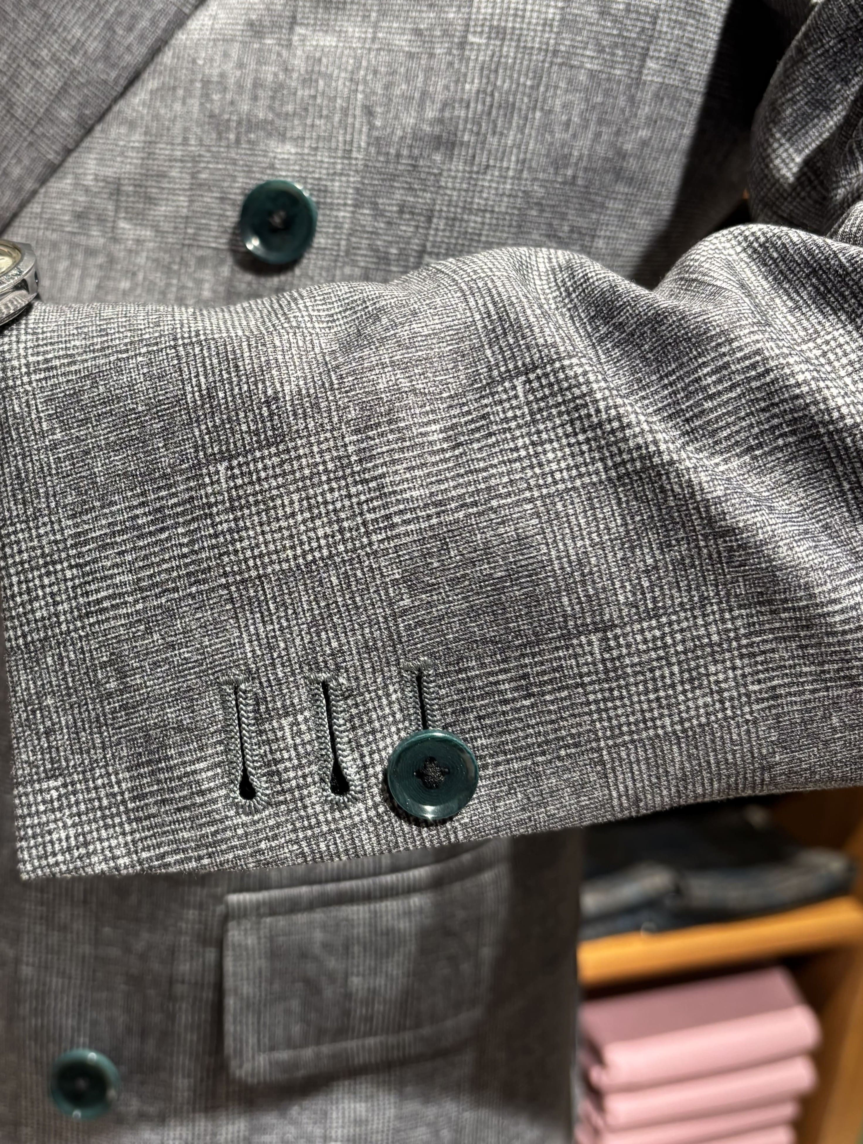 袖先のボタン周りは3つボタン+「本切羽」というボタンホールがあり開閉可能な仕様に。
