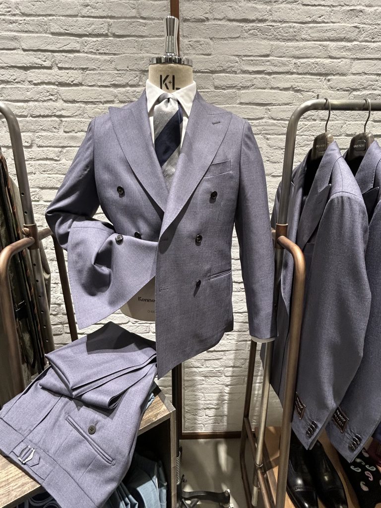 最近ではビジネスでダブルをお求めになる方も多くなっています。シングルスーツを沢山お持ちという方、結婚式に着用するスーツをお探しの方、様々な方にオススメでございます。