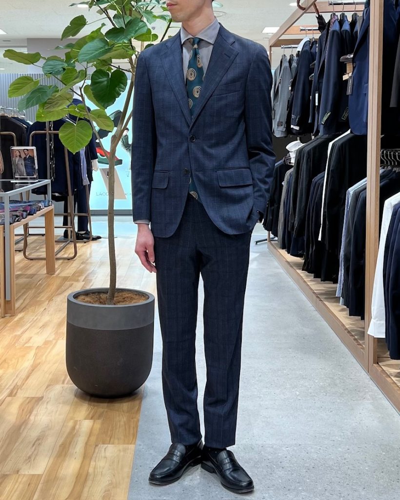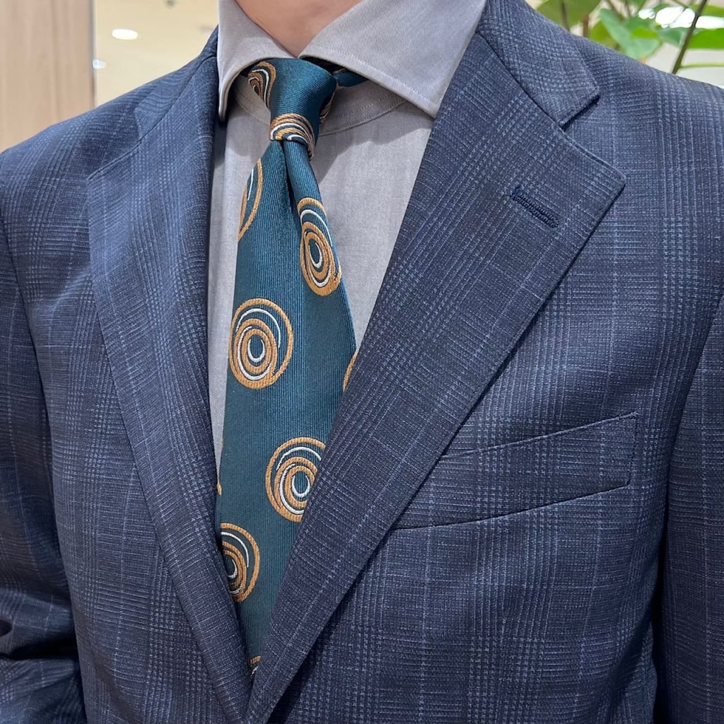 今回はネイビーと相性の良いグレーのシャツに、ブルーを基調としつつ春らしいイエローの小紋柄が配されたネクタイを合わせ、ビジネスらしくも爽やかな春夏らしいコーディネートを意識してみました🌸