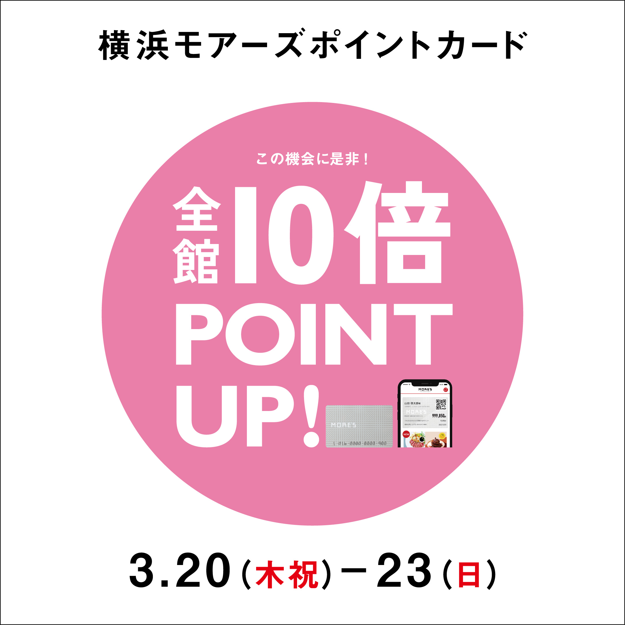 モアーズポイントカード・アプリで貯まるモアーズポイント10倍アップキャンペーンが実施されます✨