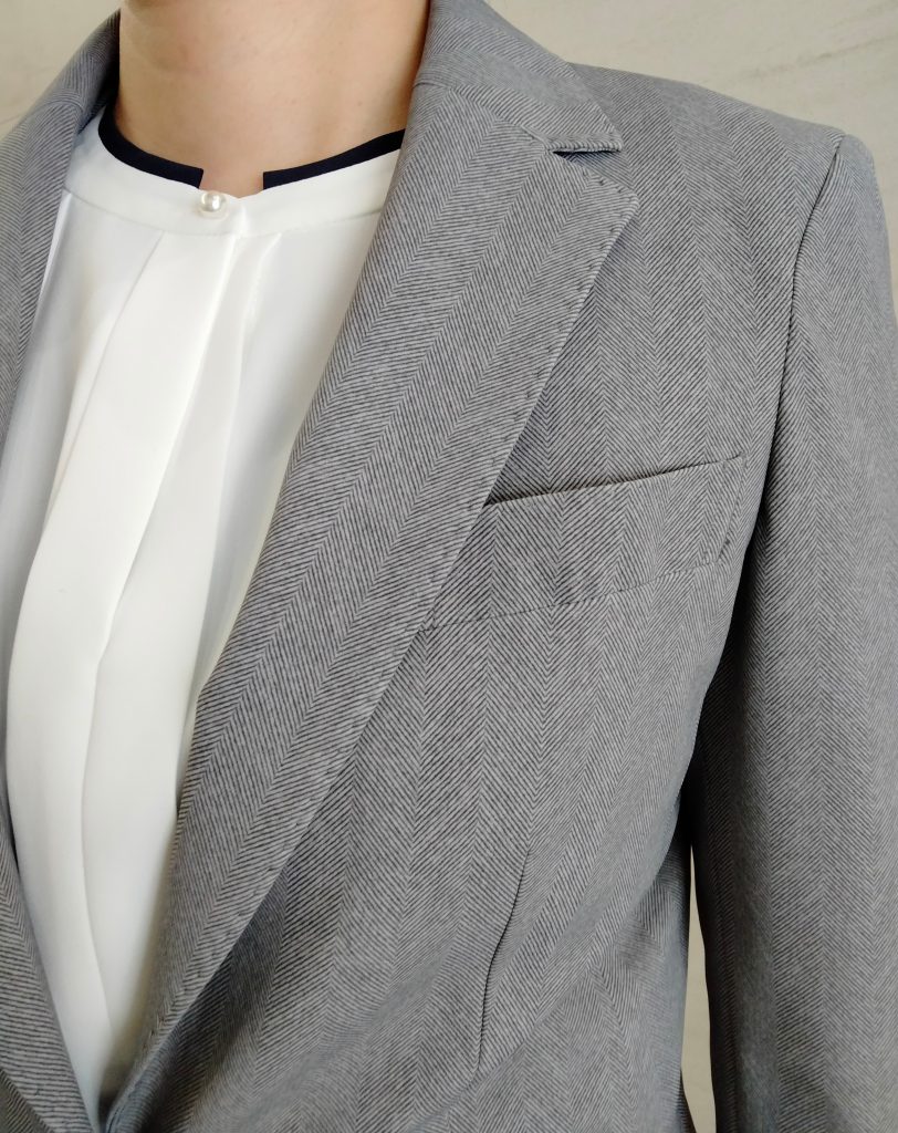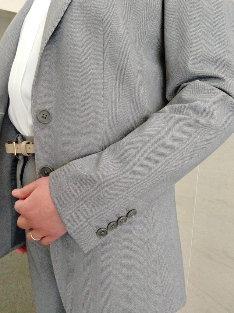 同系色のグレーでご用意✨メンズライクな四つ釦がアクセントに◎