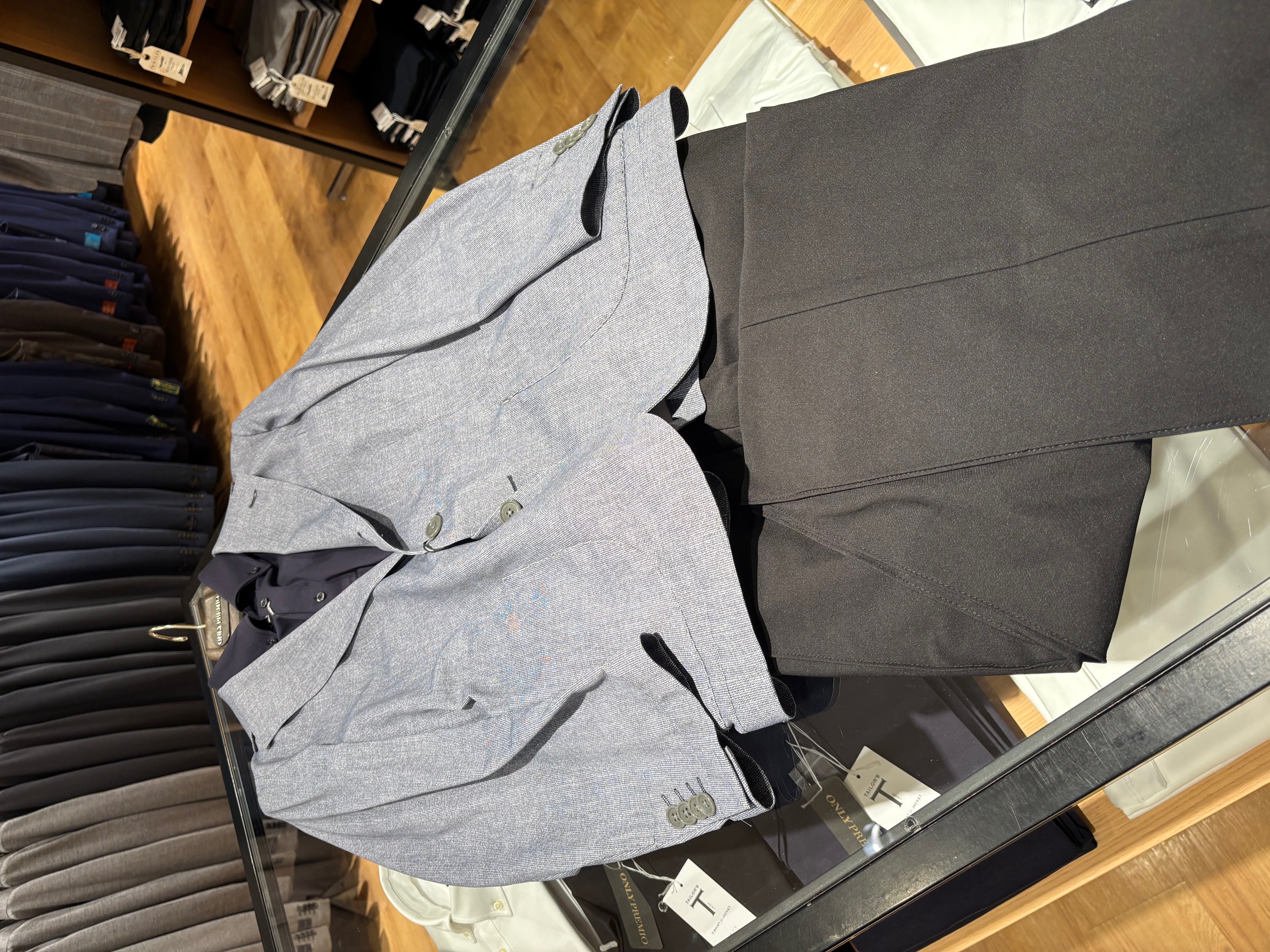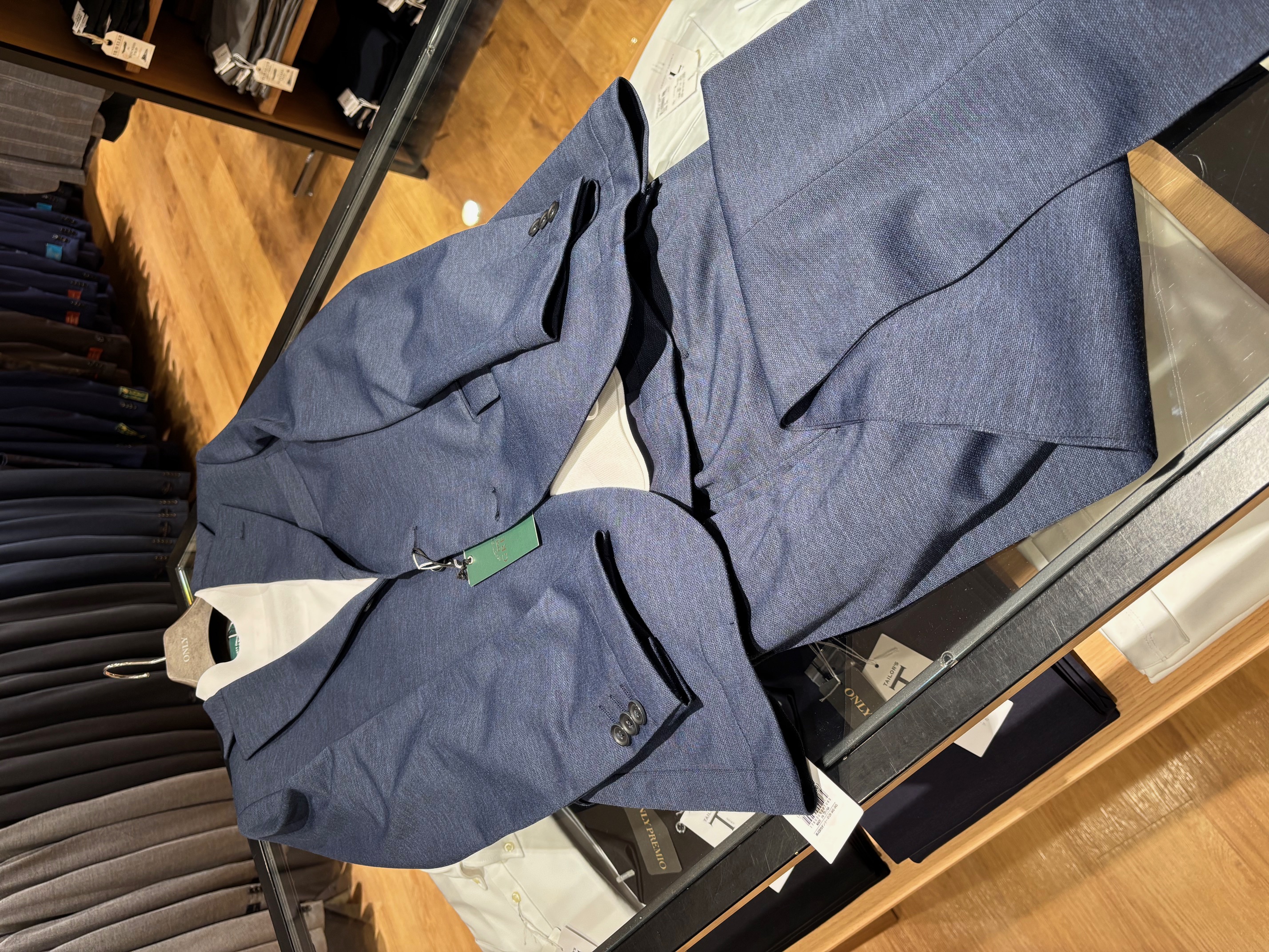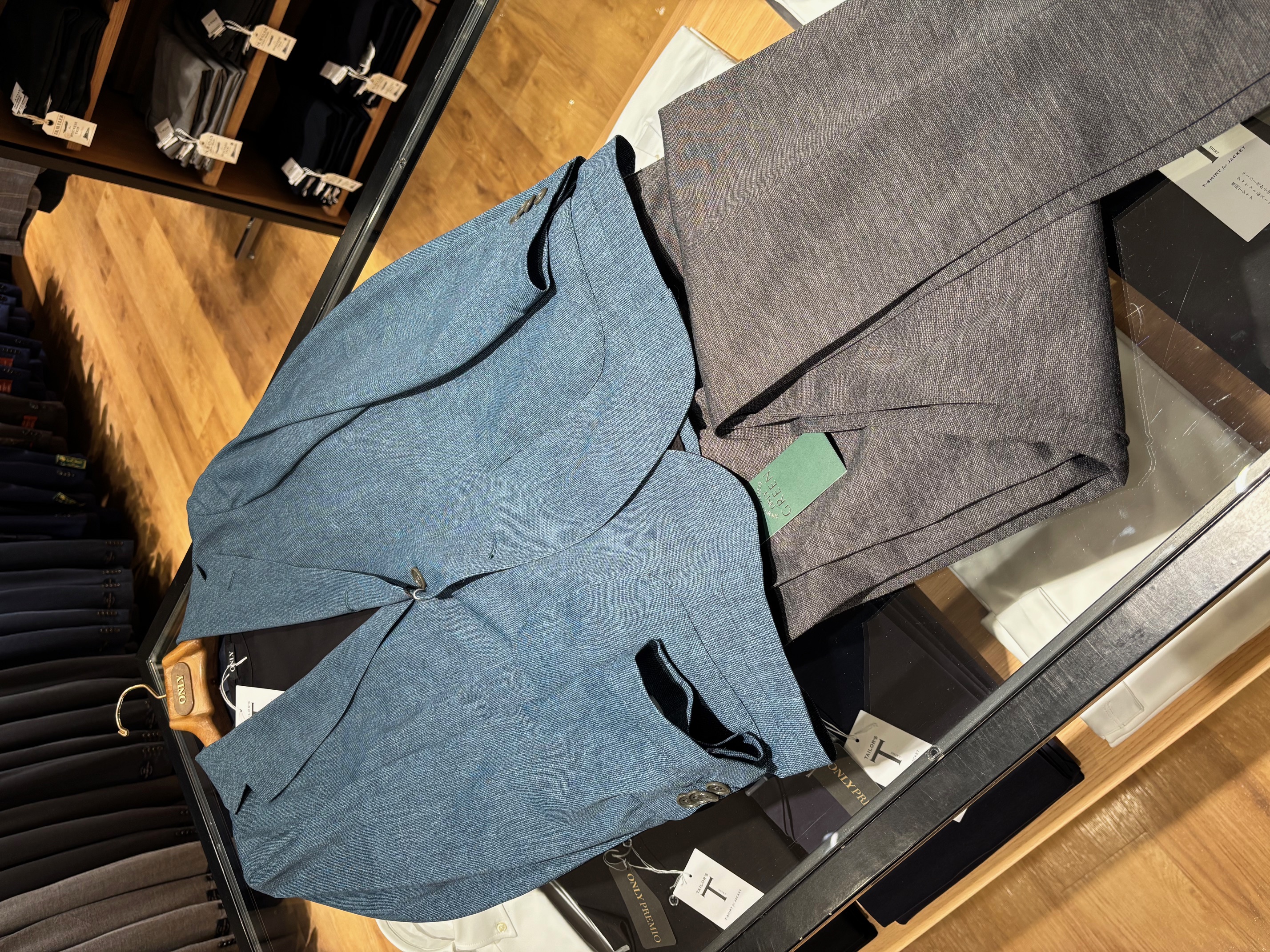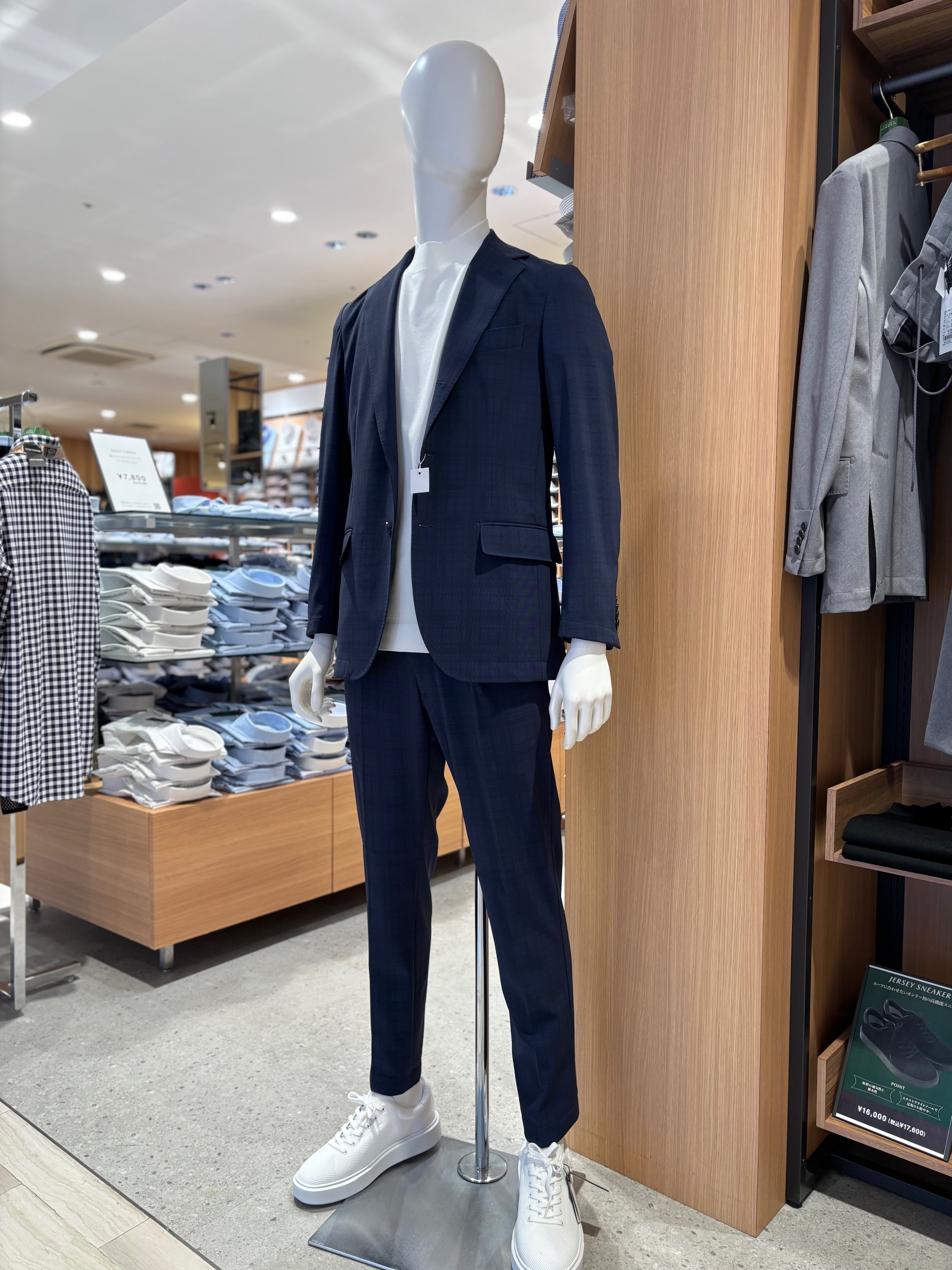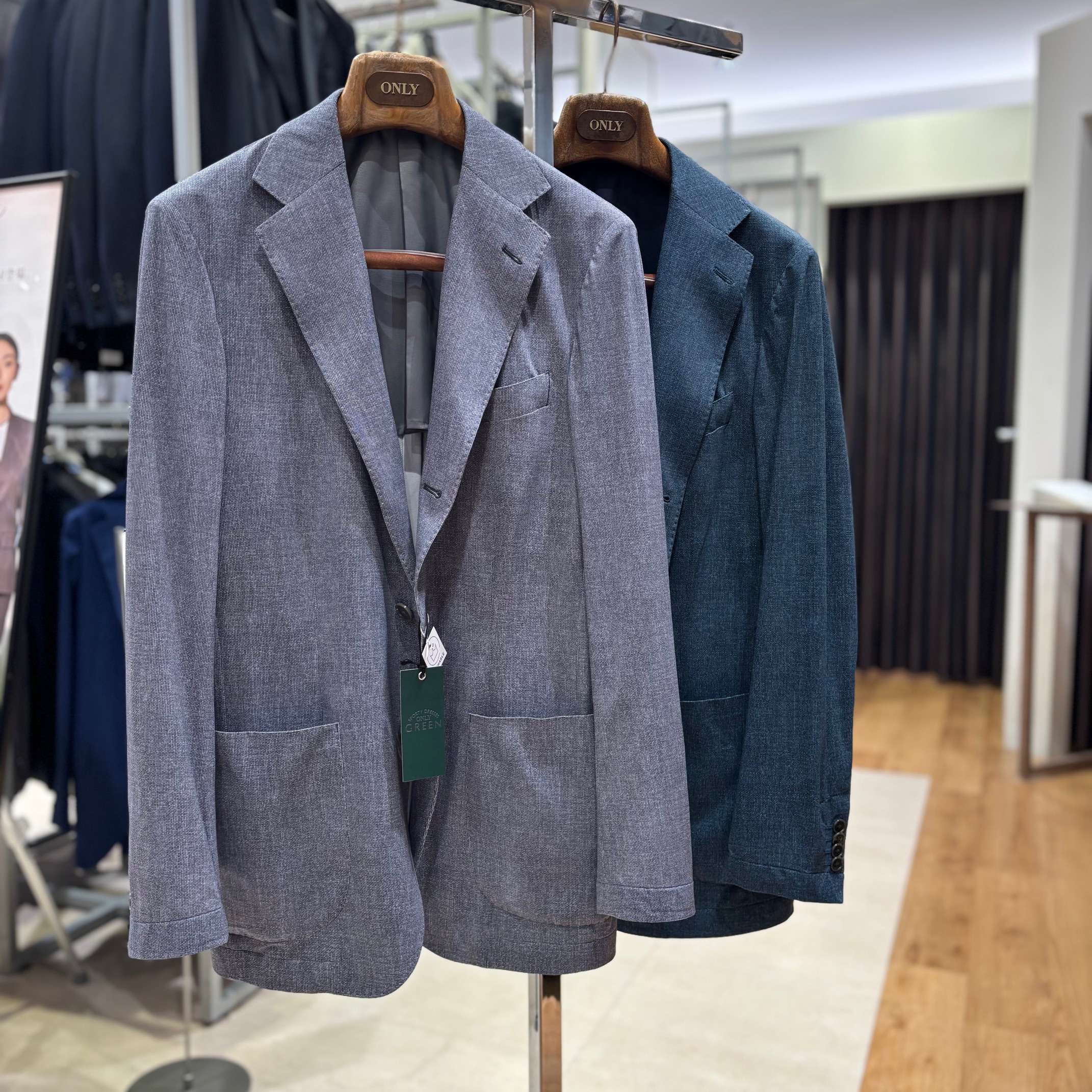 スーツで人気のサンタルチアモデルをジャケットに採用することで上品な見え感に。