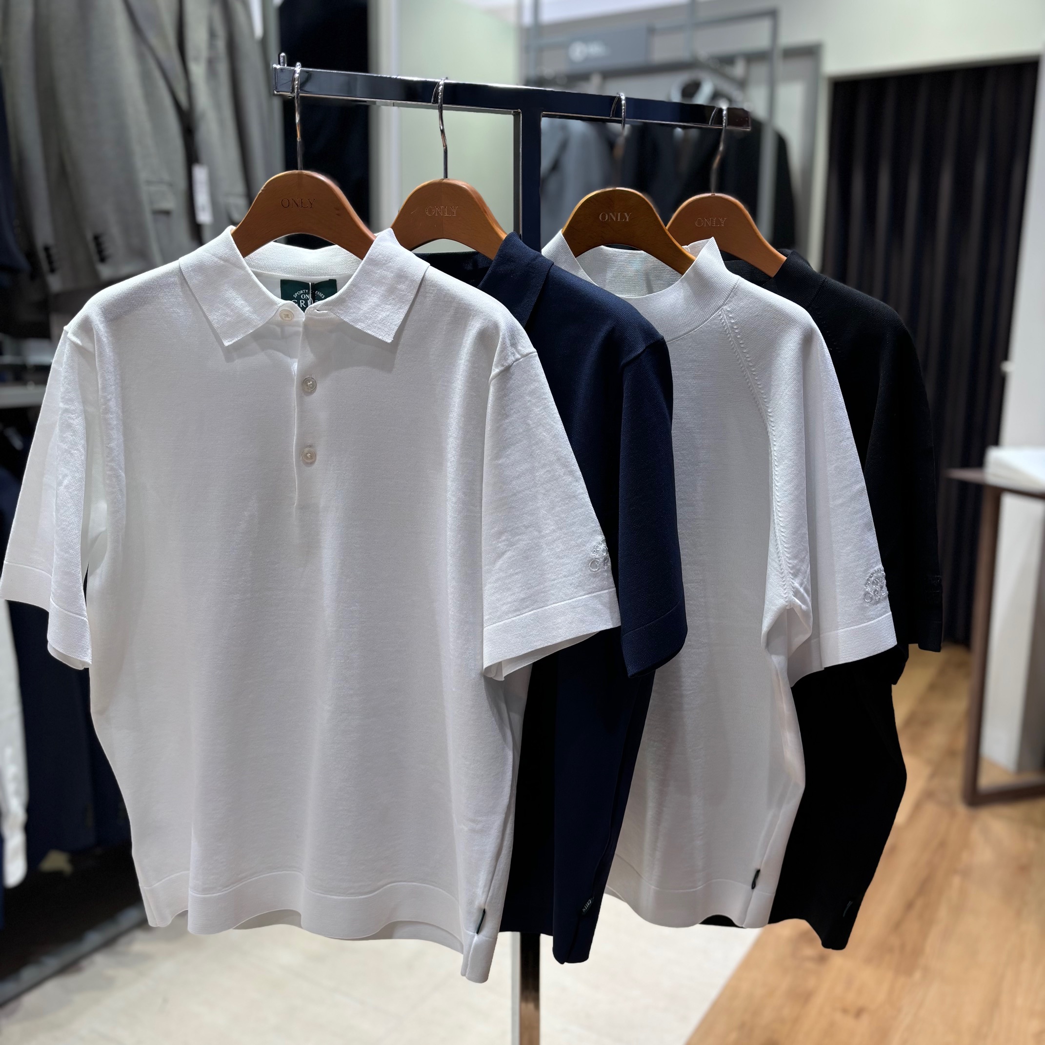 イージーケアニットで柔らかくもカッコいい大人な雰囲気に。