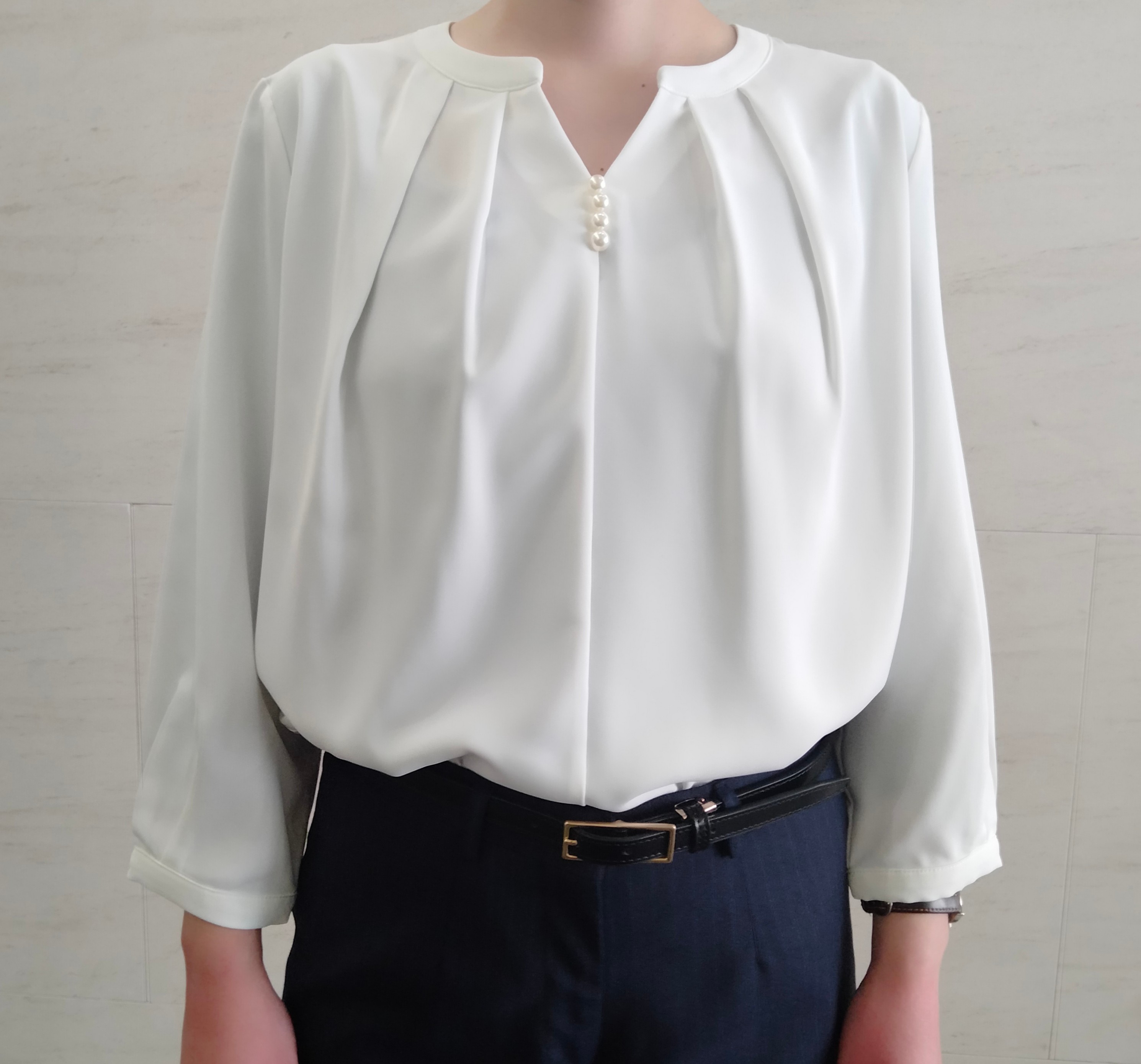 胸元がすっきりとした印象になるキーネックデザイン✨