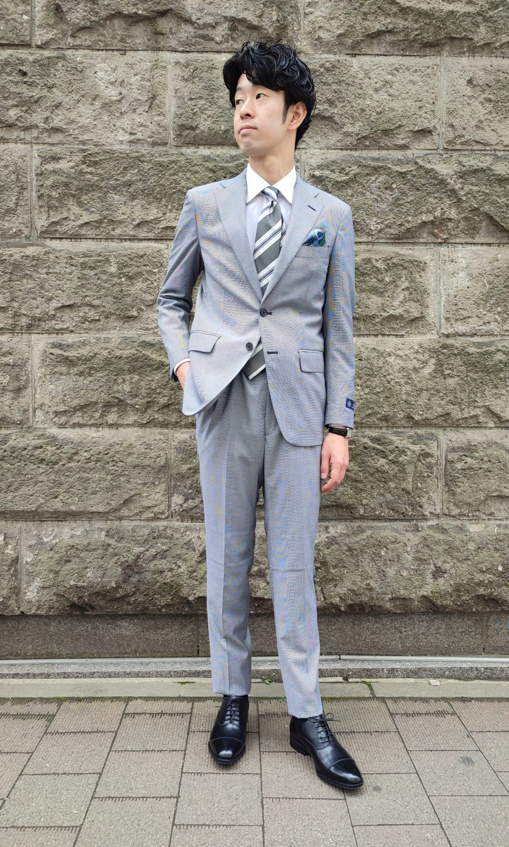 全体のトーンはネクタイも含めグレーで統一しました😊
