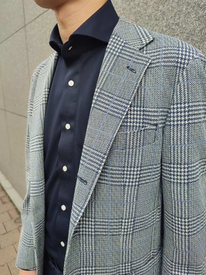 清涼感ある発色で落ち着きすぎずビジネスにピッタリな1着なので、