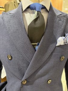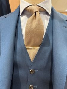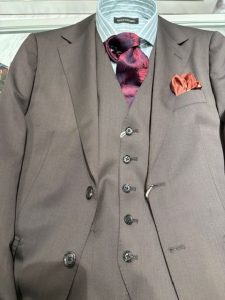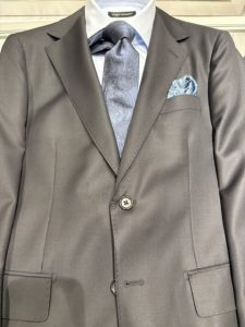 お客様にどんなスーツを着る予定か尋ねると最近はブラウンとおっしゃる方が多くなってきています。