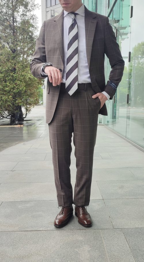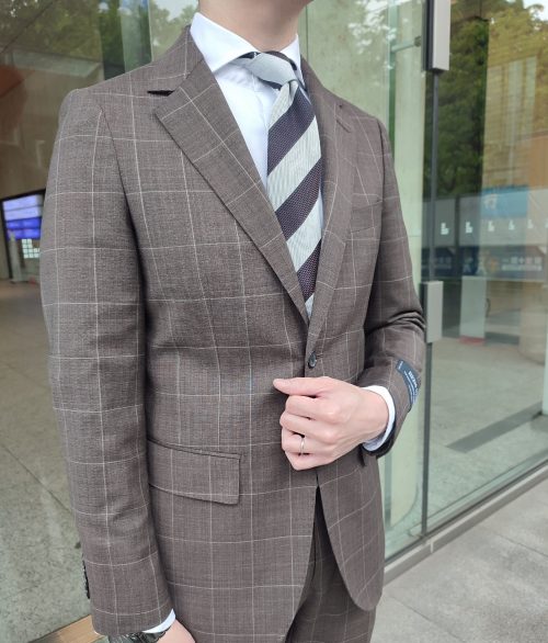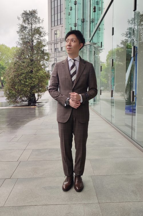 ブラウンのウィンドペーン柄スーツです✨