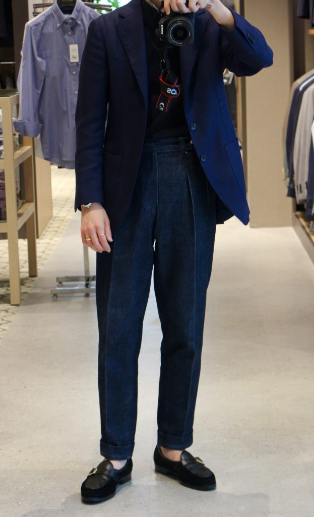 更にサイズが合わせる事に目が行き過ぎ、タイト目に作られることも多い事で、より生地がボディーラインを拾ってしまいバランスが崩れてしまいます。