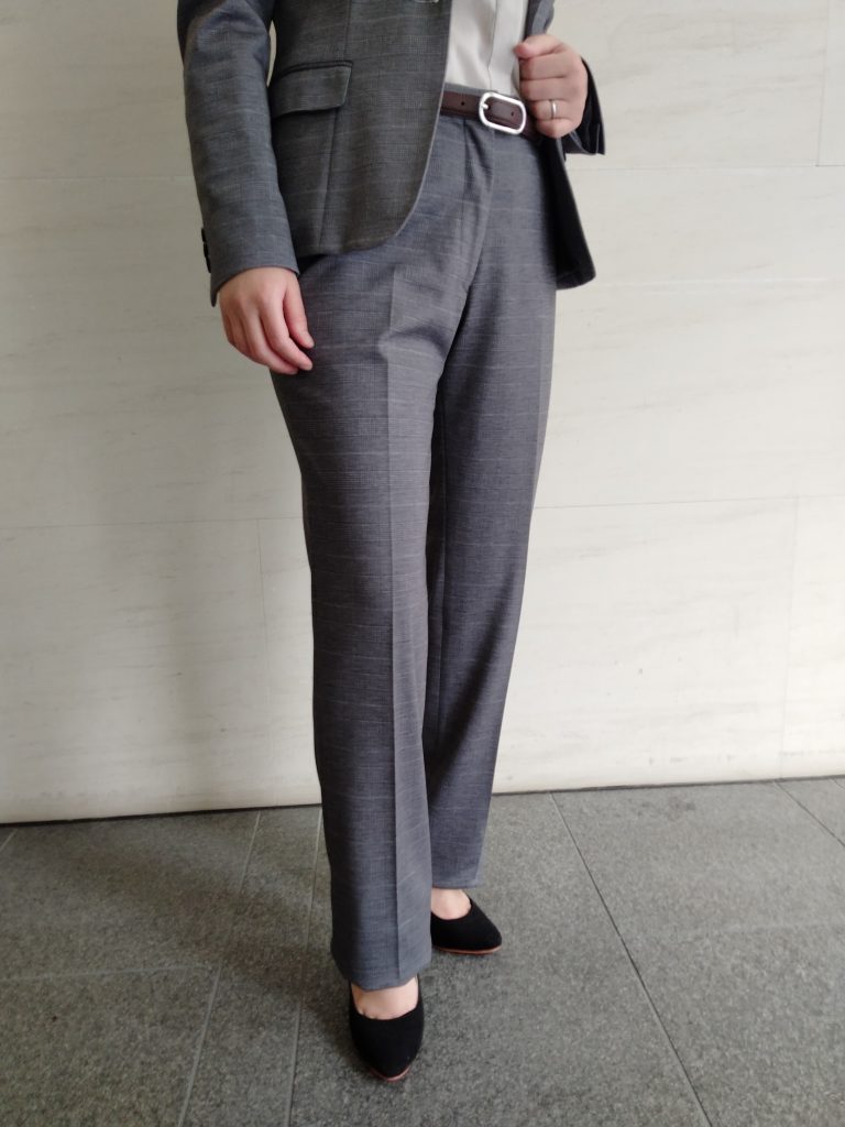 パンツは裾幅の細いストレートパンツなので、