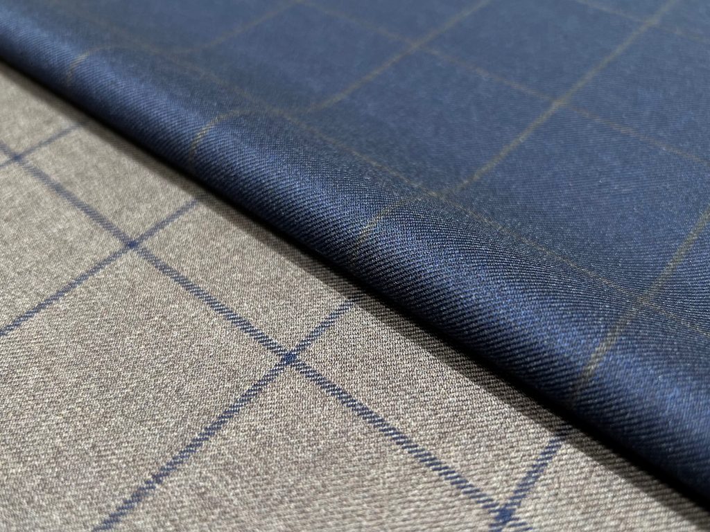 アズーロ・エ・マローネカラー(青×茶)のウィンドペン柄が知的で洒落た印象を与えてくれます!