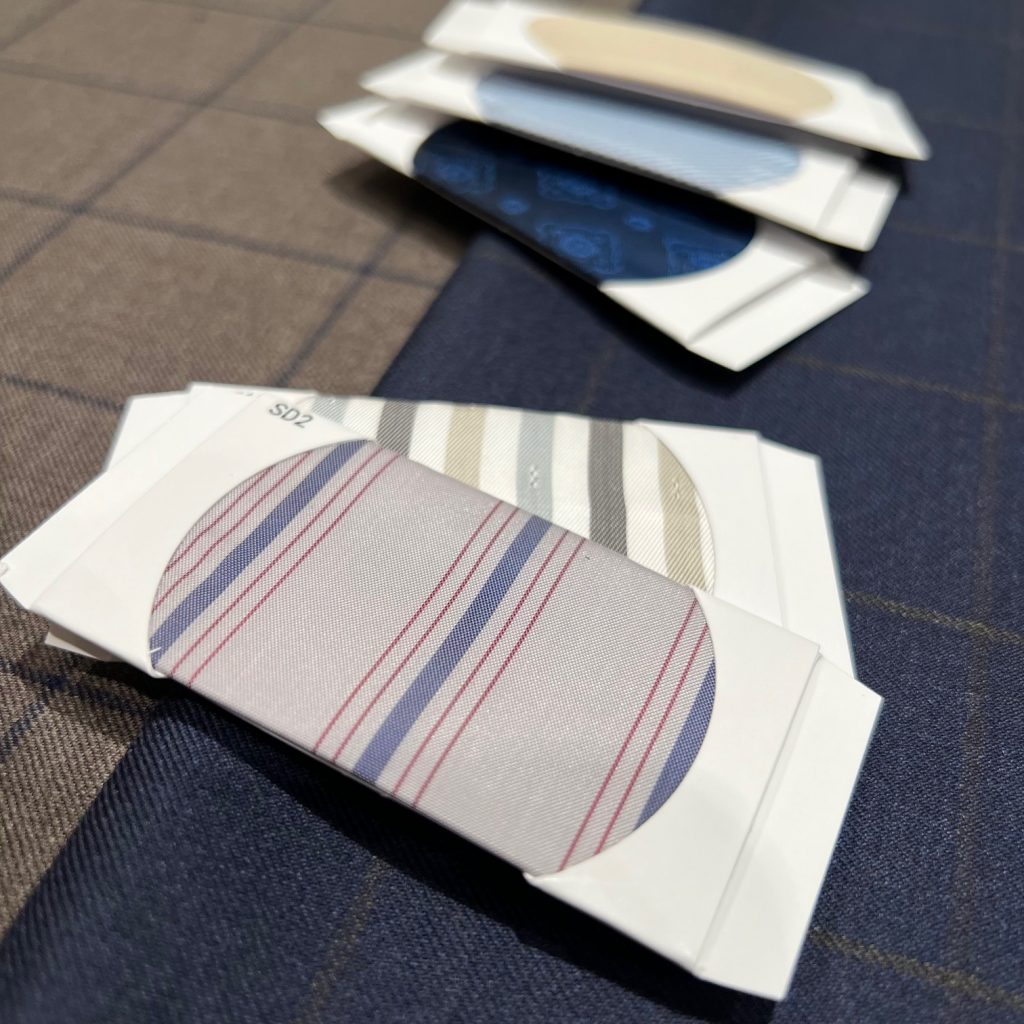 同系色の裏地を入れると統一感があって素敵ですが、柄物の裏地や生地と異なる色の裏地を入れてあげるとさらにオーダーらしく見えてテンション上がります!🎶