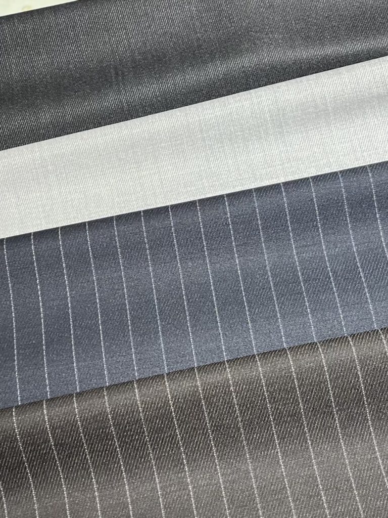 無地は急角度で綾目が立ったキャバリーツイル生地、