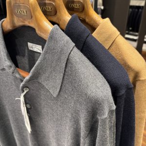 上品な光沢と柔らかさを備えたニットポロシャツ。