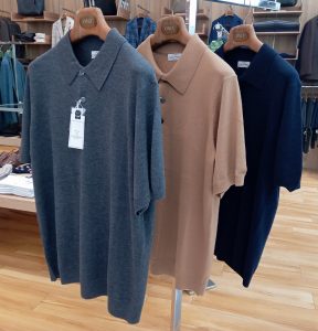 ウール本来の通気性とシルクの滑らかさ、そしてアクリルの軽量性を併せもつ、ウールシルクアクリル製のニットポロ。