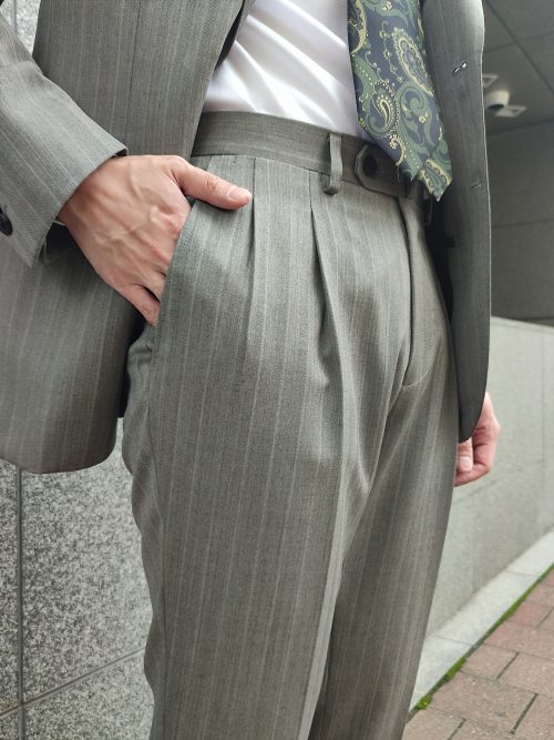 グレージュに繊細な色遣いでありながら太めのチョークストライプが大人な洒落感を演出✨