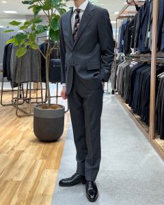 従来のスーツよりも着丈も長めの設定し、より風格のあるモデルに仕上げていますが、しっかりとスタイリッシュな雰囲気も持ち合わせた新モデルスーツとなっております!