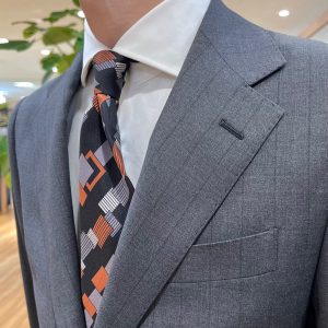 今回はシンプルにホワイトのシャツと差し色としてオレンジを配したネクタイを入れてみました!