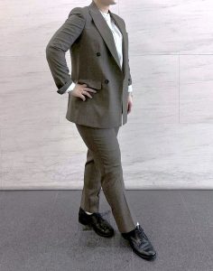 今回はカタログにも掲載しております4釦ダブルブレストジャケットスーツをご紹介致します(*^^*)