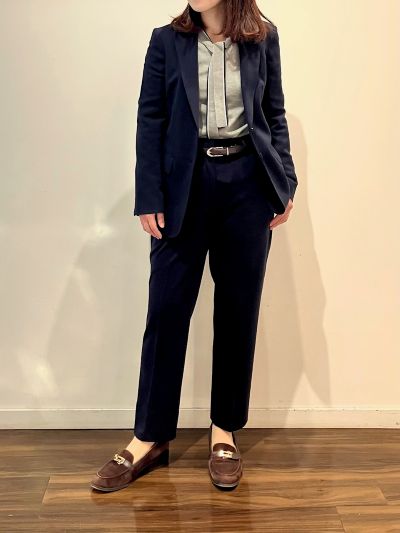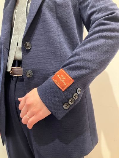 既製品のジャケットはシングルの2釦。着丈は長めなので、落ち着きのある印象(*^^*)