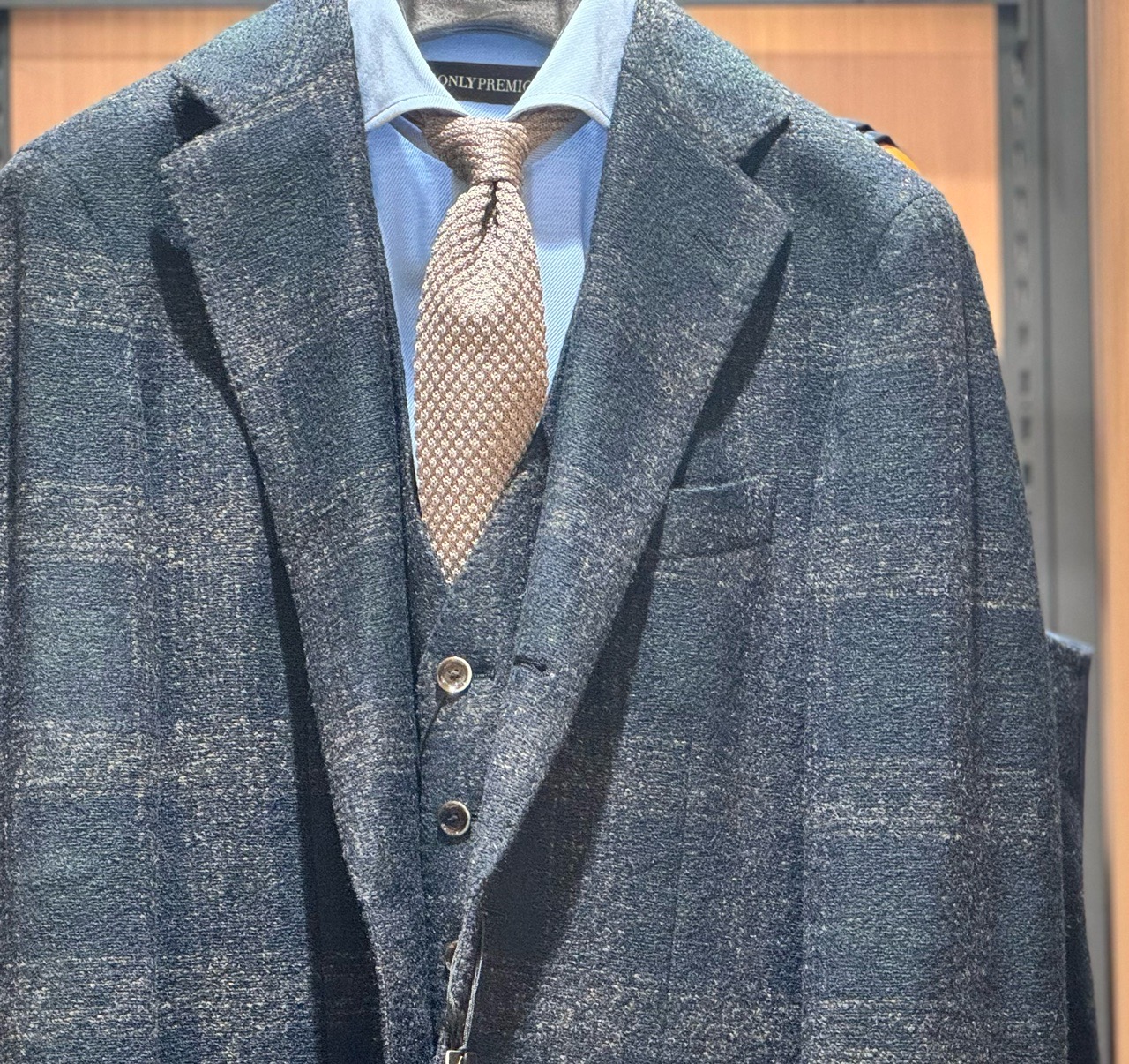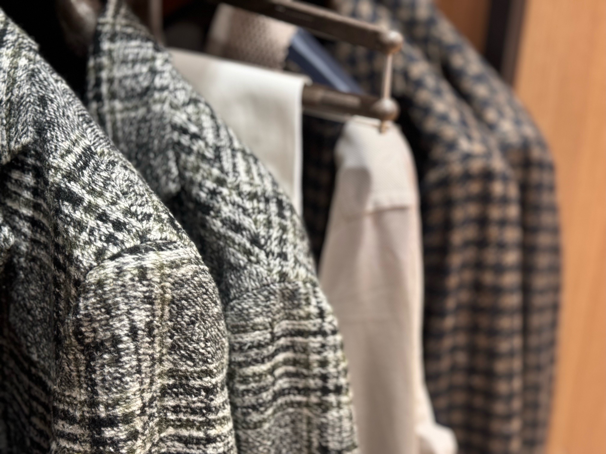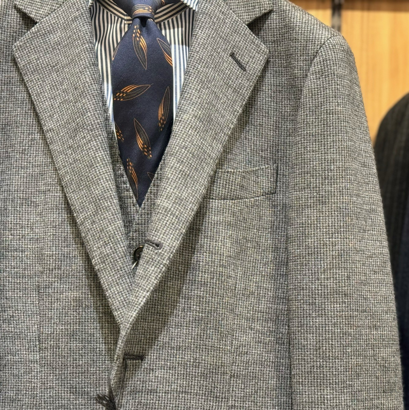 プリントで柄を表現しているのですが、見ても触っても通常のウール生地と遜色がないので私たちも驚いています。