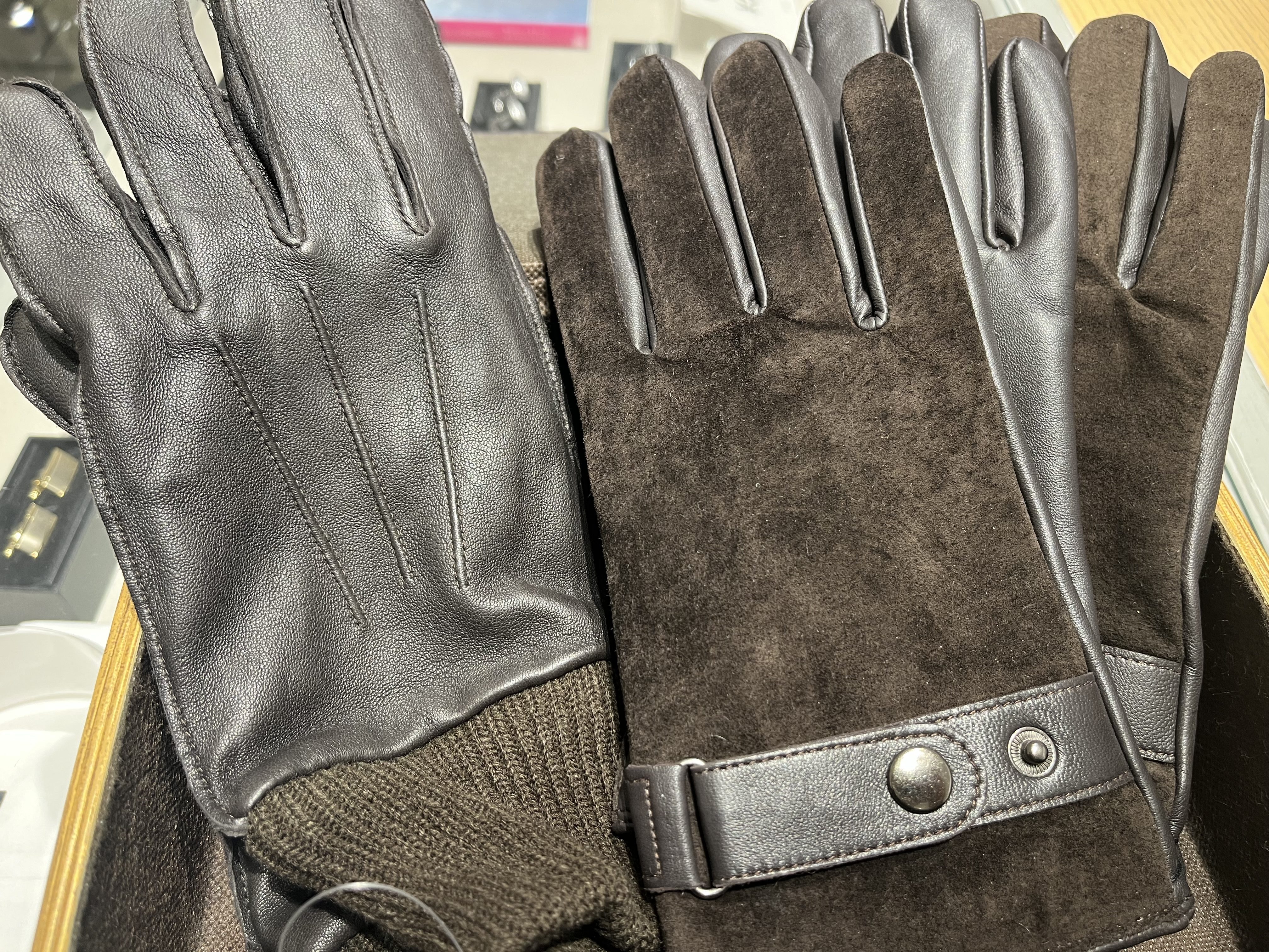 革を使用している手袋も販売しております。
