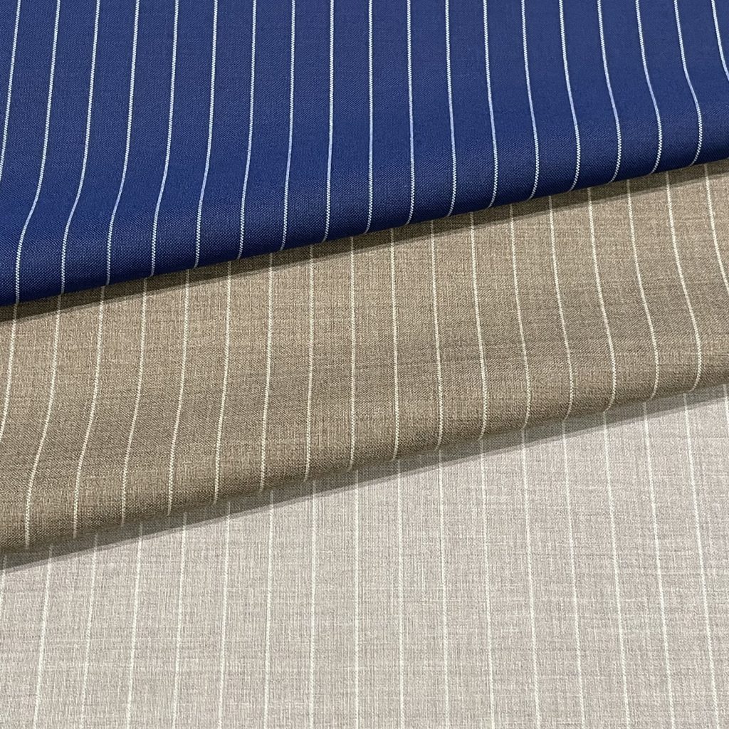 スーパー110’sの綾組織。光沢感の高い、フォーマルなシャドウストライプで、シーンを選ばず着やすいコレクション。