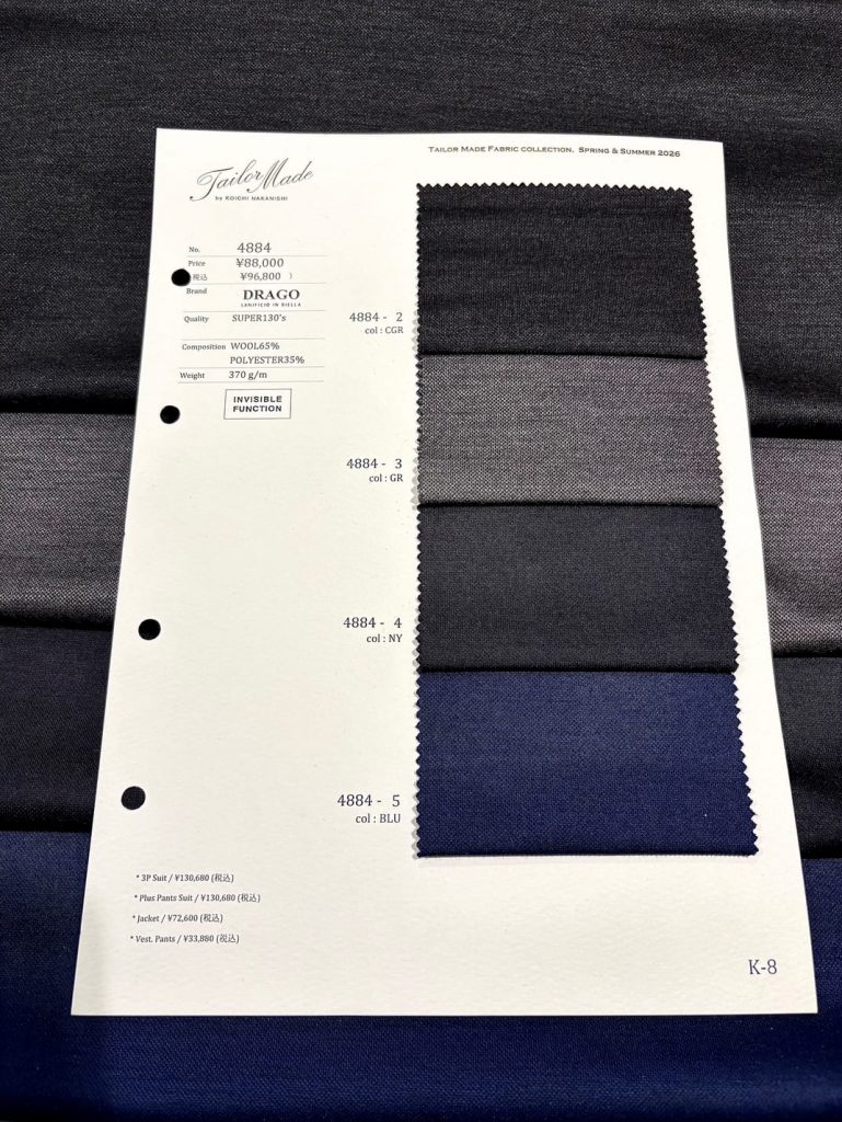 イタリアのDORAGO社の生地でSUPER130`sのクオリティーでありながらジャージー素材でストレッチ性抜群です!!