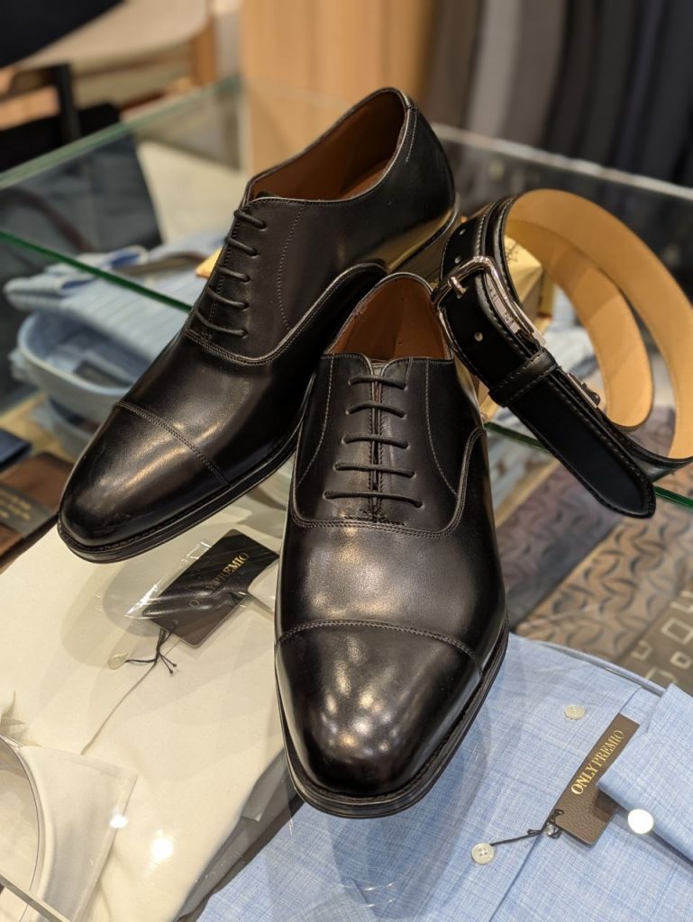 ビジネス用におすすめの、内羽根ストレートチップシューズと、姫路レザーベルトです。