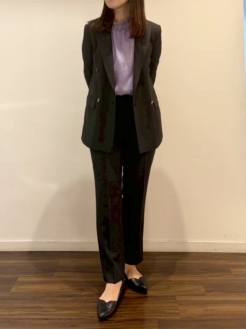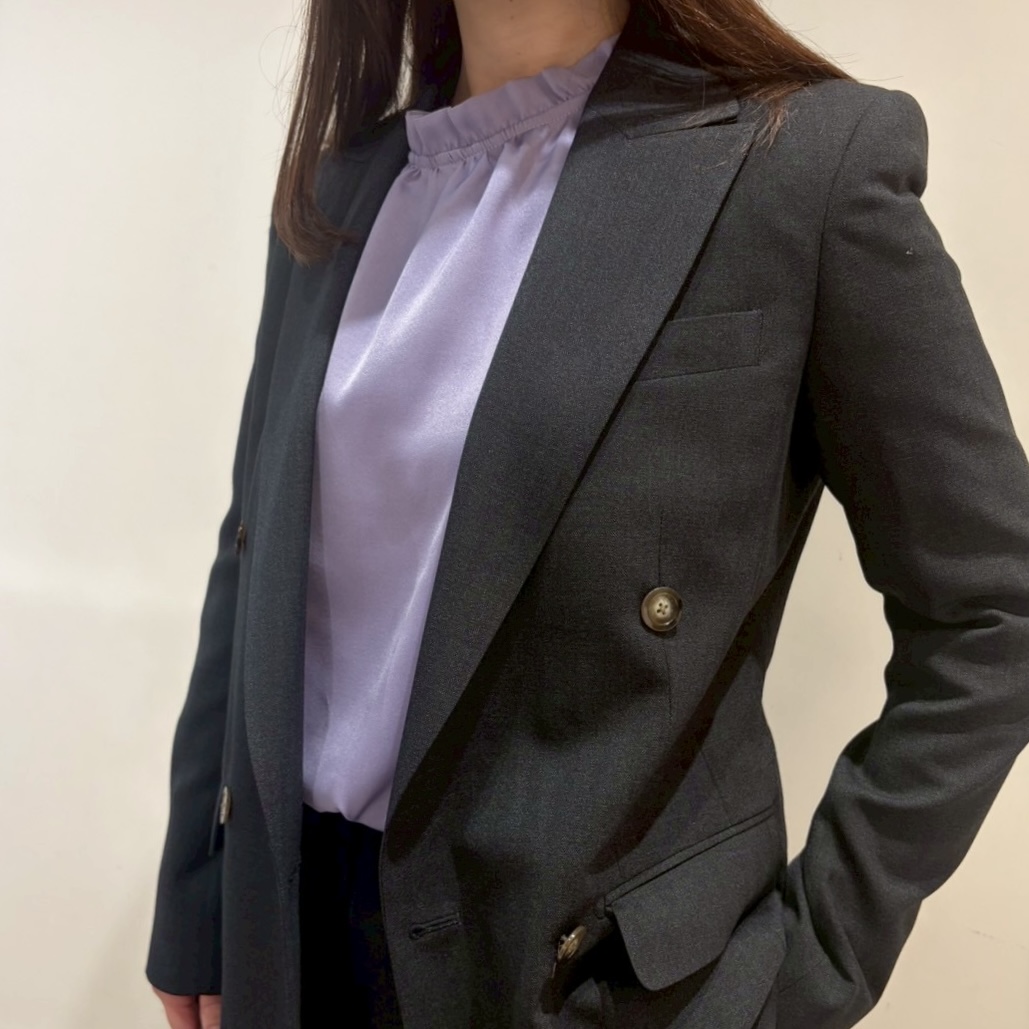 チャコールグレーやネイビー等ベーシックなスーツのインナーにおすすめです✨