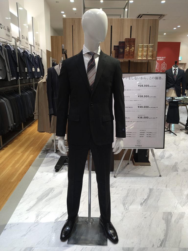 ブラック無地のスーツなら、就職活動をする時にも着用して頂けます。