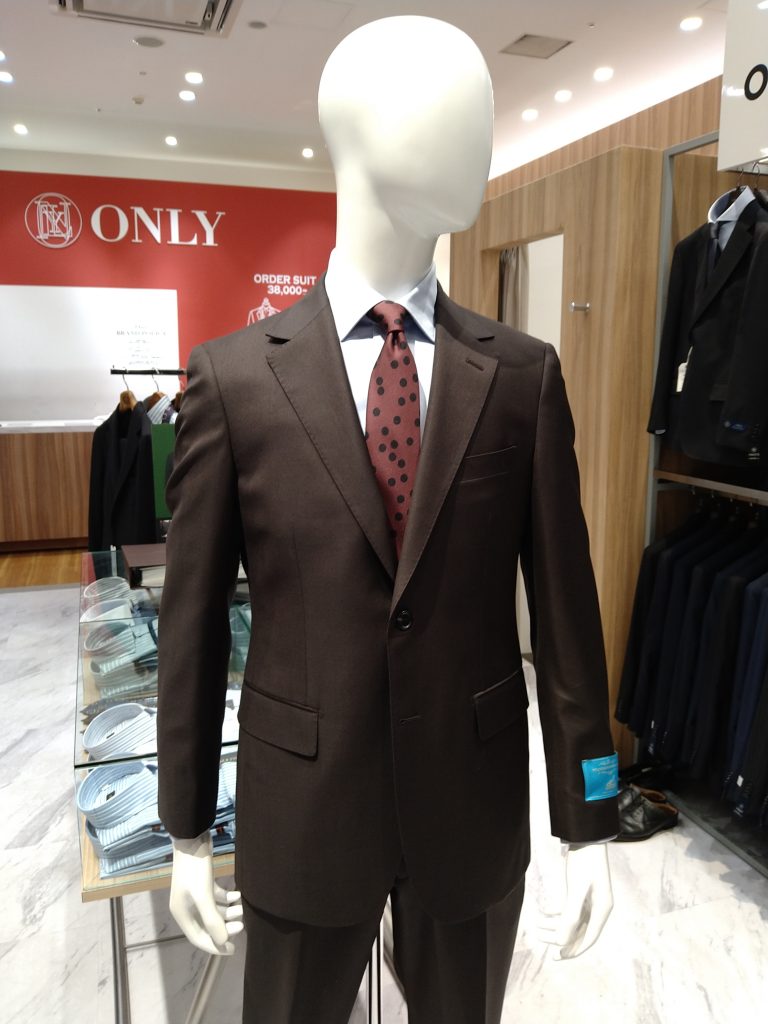ブラウンのスーツとグレーのシャツでお洒落に。