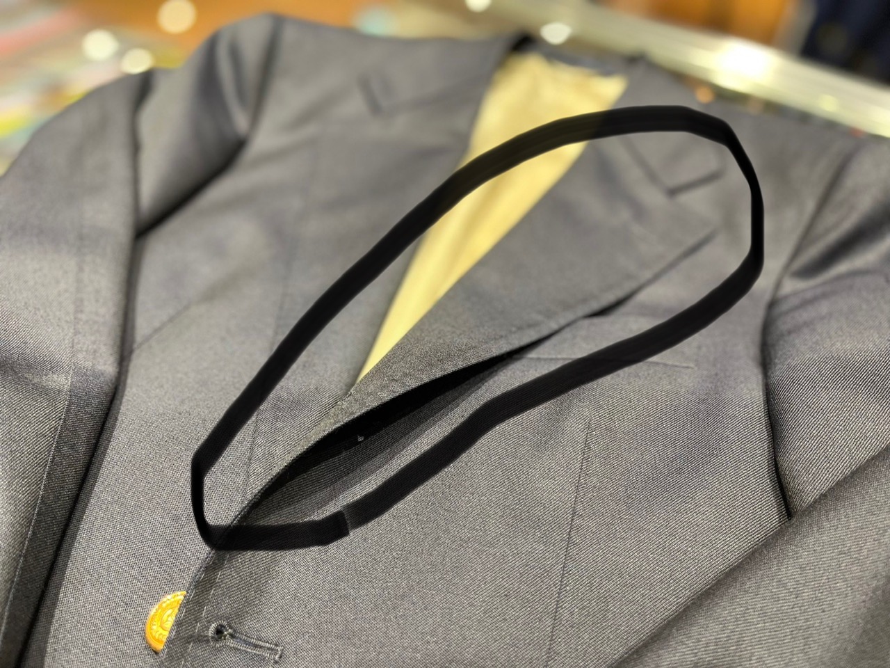 上質な「毛芯(けじん)」の使用: ペラペラにならないよう、ラペルの内部に馬の尻尾の毛などを編み込んだ「毛芯」が入っていることが重要です。安価な接着芯(接着剤で貼り付ける芯)では、美しい反発力が出ません。