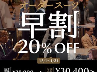 【オーダースーツ早割20%OFFのご案内】ONLYイオンモールKYOTO店