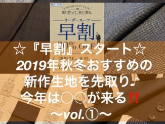 【『早割』スタート‼2019年秋冬おすすめの生地を先取り♪○○が来る!~vol.①~】ONLY PRMIO TOKYO 有楽町店&E-TAILOR