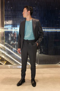 - ビジネスでも着用できる、シルクブレンドスーツをドレススタイルにコーディネート。
