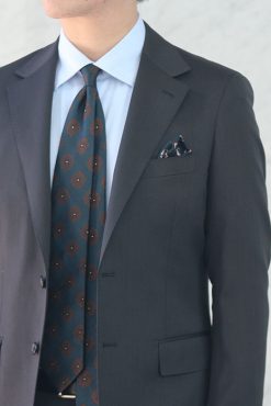 - サラッとジャケパンスタイルにクラシックなプリントタイでVゾーン映えコーデ