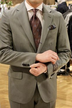 オーダーはもちろん、既製品でもご好評いただいている「極」シリーズから、今回はやや明るめのグレーの生地で仕立てました。