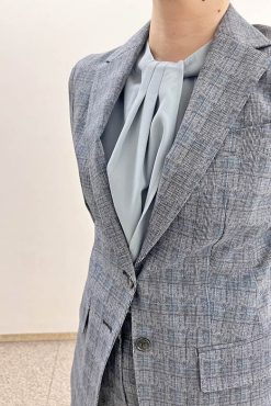 定番の紺無地生地もオプションのメタル釦へ変更することでスクール感溢れる紺ブレスーチングスタイルへ。