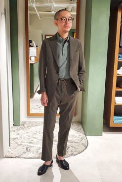 - きれいなグレージュカラースーツ JERSEY JOURNEY横浜モアーズ店