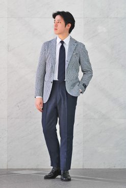 - 白とネイビーのハンドトゥースジャケット 静岡駅前店