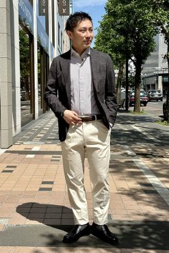 - カジュアルテイストのベージュパンツ 赤坂店