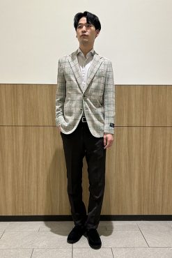 - 清潔感のあるベージュチェックジャケット イオンモール京都桂川店