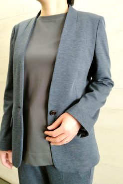 ラペルの自然なロールが大人の雰囲気を添え、ニットの上に羽織ってもほどよく上品にまとまります。