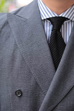 ネクタイの柄を大柄にする事でシャツとのメリハリを付けた所もポイントです。