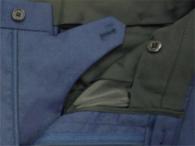 パンツの前合わせの内側には、“天狗”と呼ばれるボタン留めの持ち出しを装備。ウエスト部分のフィット感を高め、シャツの収まりをよくします。