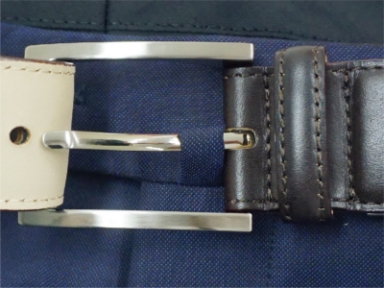 ベルトのピンを通して固定するためのクラシカルな意匠は、ベルト位置をきれいに保つのはもちろん、パンツを美しく履いていただくことにもひと役買っています。