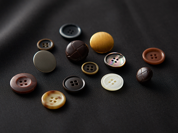 カラー豊富な練りボタンをはじめ、ホーン(水牛の角)やナット(タグワ椰子の実)、各種メタルまで豊富なボタンを用意。