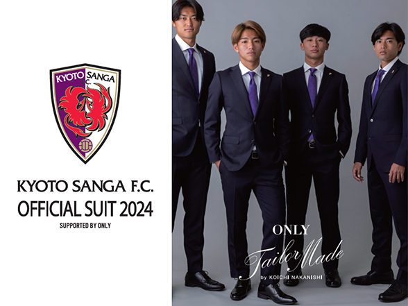 ONLYは、京都サンガF.C.のオフィシャルスーツサプライヤーとしてテーラーメイドのスーツを提供しています。