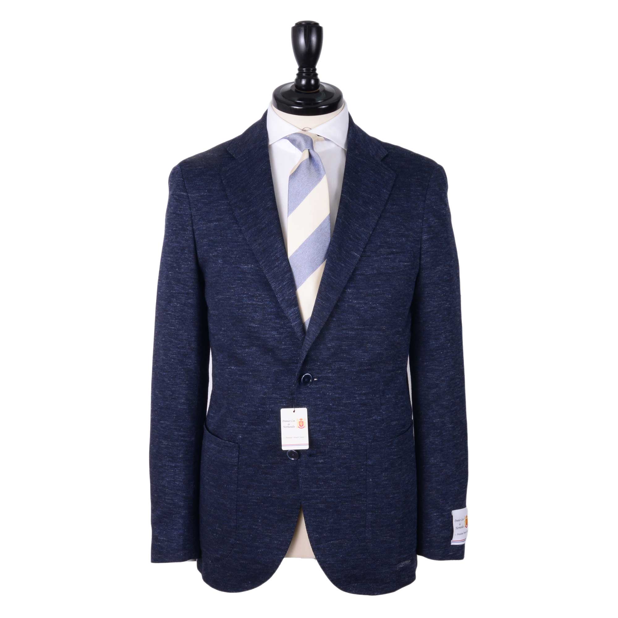 また、この素材は、世界最高品質といわれるフランスリネンの中でも定評のあるノルマンディ地方で収穫された糸節(ネップ)の少ないフレンチリネンを使用しております。非常にやわらかな風合いと上品な光沢感は、タイドアップにも最適なジャケットに仕上がっております。